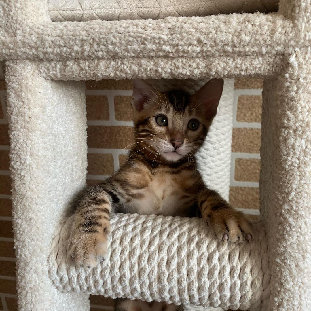 Darf ich vorstellen? Romeo – ein wunderschöner Bengal Kater mit wild gemustertem Fell und funkelnden, neugierigen Augen 💙.