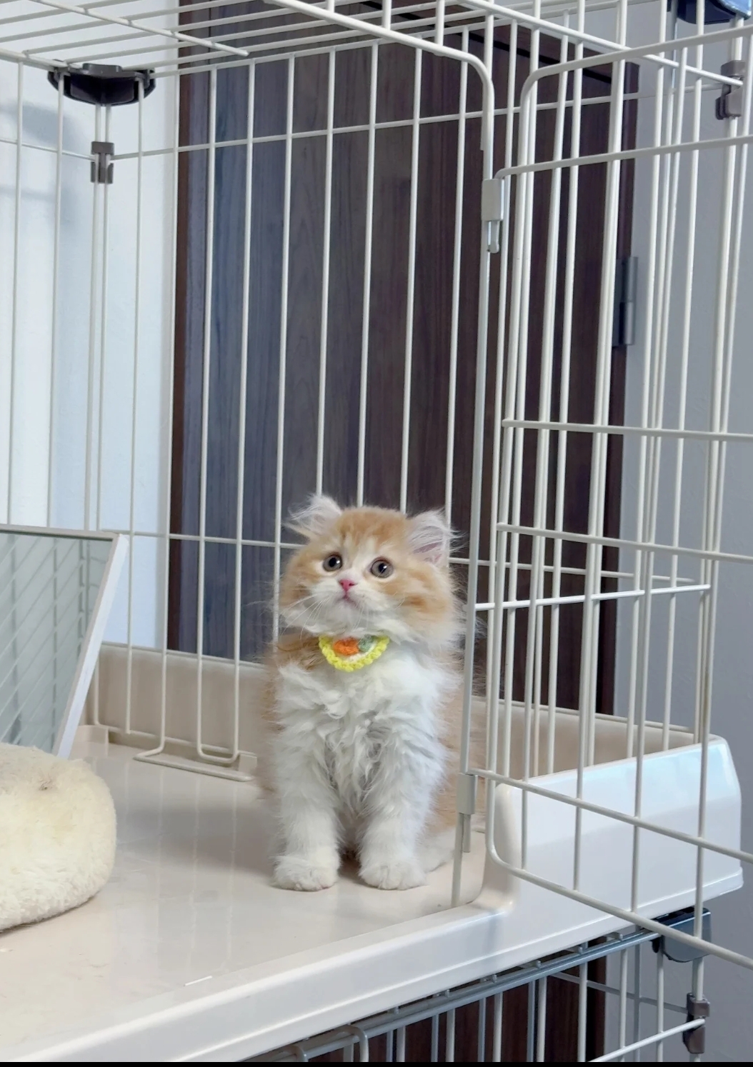 Lerne Fluffy kennen – deine süße Prinzessin in Sonnenuntergangsfarben! 🧡 Mit ihrem weichen orange-weißen Fell, dem flauschigen Schwanz und den typischen Maine-Coon-Öhrchen mit Pinselspitzen ist Fluffy eine perfekte Mischung aus Eleganz und verspieltem Charme.