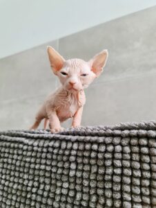 Unsere Sphynx werden unter höchsten Standards gezüchtet und aufgezogen. Sie erhalten ein genetisch geprüftes, geimpftes und tierärztlich untersuchtes Familienmitglied mit 24-monatiger Gesundheitsgarantie.